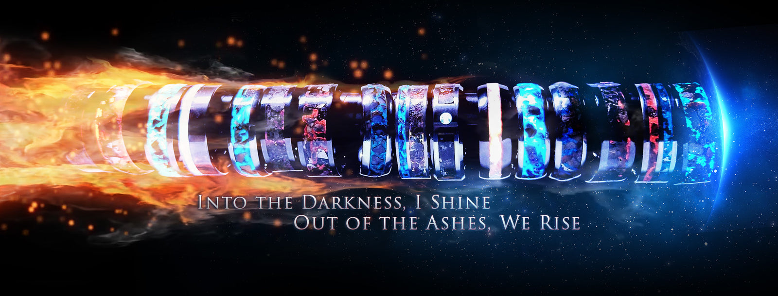 Tyrannosaurus Fossil & Nantan Meteorite Inlaid Rings & Wedding Band